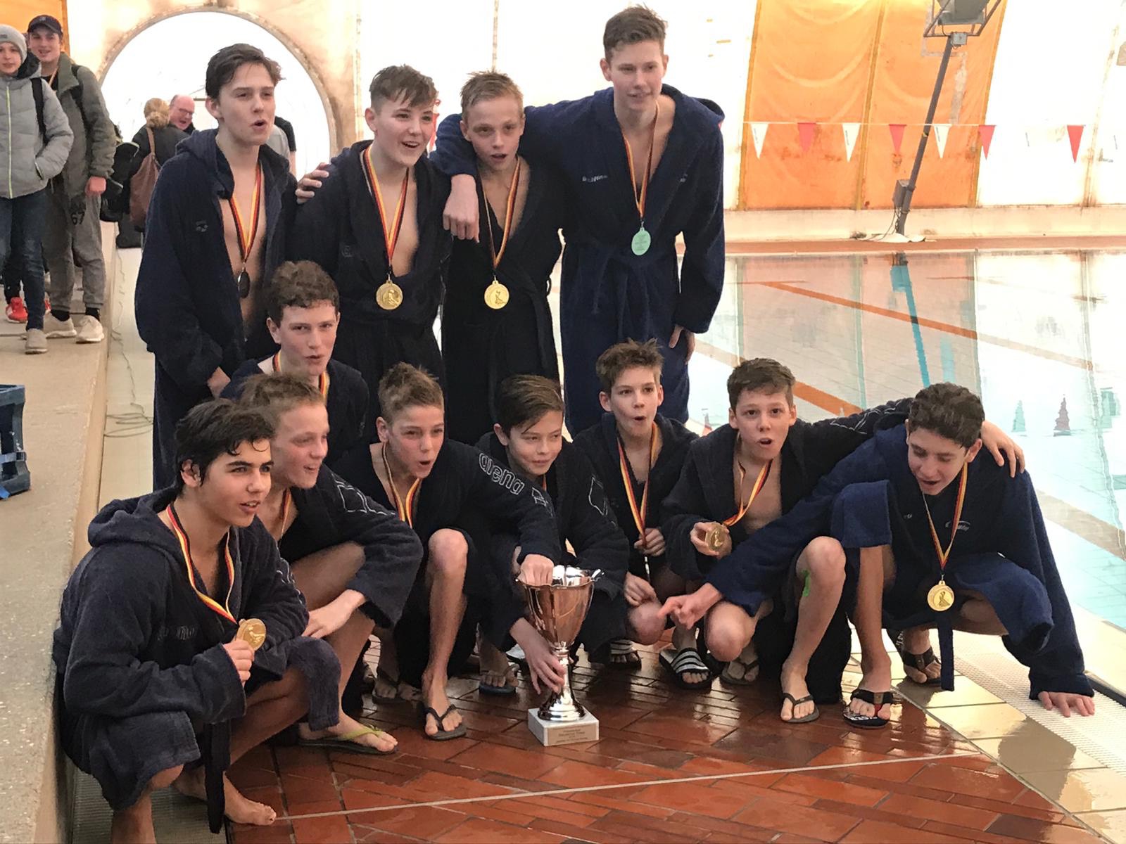 Der Nachwuchs der SV Krefeld 72 hat den deutschen Pokalwettbewerb der U14-Junioren souverän zu seinen Gunsten entschieden: Bei der Endrunde im Stuttgarter Inselbad legten die Rheinländer in dem dortigen Viererfeld makellose 6:0 Punkte hin und lagen damit vor Wasserfreunde Spandau 04 (4:2), OSC Potsdam (2:4) und Ausrichter SSV Esslingen (0:6). Nach einer absolut dominanten Vorrunde mit beispiellosen 101:0 Toren (!) in drei Spielen musste die Mannschaft des Trainergespanns Thomas Huber und Marco Halb auch bei den drei Auftritten am Neckarufer lediglich acht Gegentreffer hinnehmen und machte aufgrund gewonnener Direktvergleiche den…