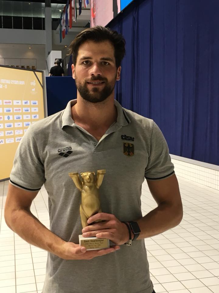 Deutschlands Schlussmann Moritz Schenkel vom nationalen Meister Waspo 98 Hannover wurde beim 16. FINA Weltcup in Berlin als bester Torhüter des Wettbewerbs ausgezeichnet und erhielt damit einen der drei bei der Siegerehrung vergebenen Ehrenpreise des Acht-Nationen-Turniers. Geehrt wurden an der Landsberger Allee zudem Aaron Younger (Australien) als bester Spieler und Gavril Subotic (Serbien) als Torschützenkönig.