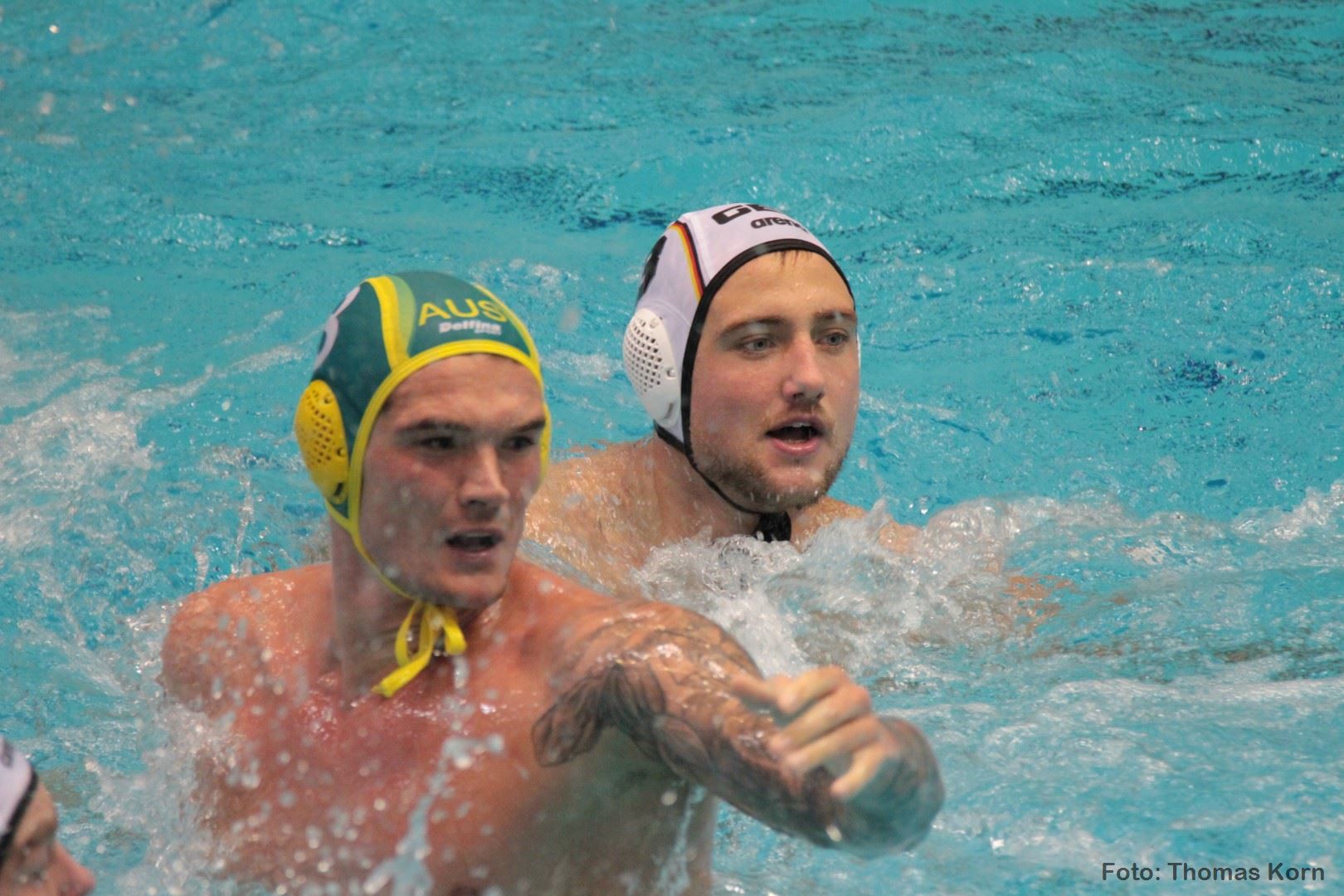 Deutschlands Wasserballer haben hauchdünn die erste Finalteilnahme bei einem internationalen Championat seit 1989 verpasst: Im Halbfinale des Weltcups in Berlin unterlag die Auswahl des Deutschen Schwimm-Verbandes (DSV) im Halbfinale dem WM-Siebten Australien erst im Fünfmeterwerfen mit 10:11 (2:3, 2:1, 3:3, 1:1/2:3) und kämpft bei dem Acht-Nationen-Turnier am Sonntag gegen Olympiasieger Serbien (13 Uhr) um Bronze. In der dramatischen Begegnung hatte der EM-Neunte die australischen Führungen immer wieder ausgleichen, wobei Julian Real 89 Sekunden vor dem Spielende beim 8:8 für den abermaligen Gleichstand sorgte. Im Fünfmeterwerfen trafen zunächst Ben Reibel und…