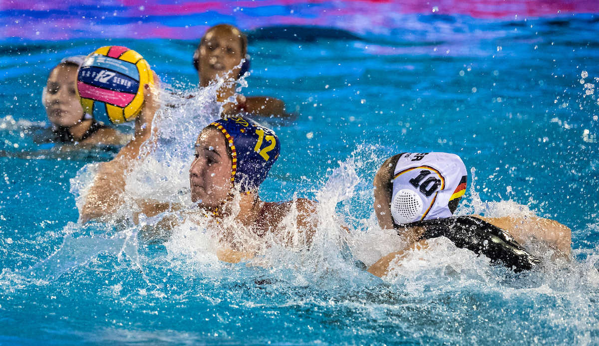 Deutschlands Frauen unterlagen bei den Wasserball-Europameisterschaften in Barcelona im zweiten Vorrundenspiel deutlich mit 2:27 (2:7, 0:7, 0:7, 0:6) gegen Vize-Weltmeister Spanien, nachdem es tags zuvor noch einen 9:8-Sieg im Schlüsselspiel gegen Serbien gegeben hatte. Bereits bei den Titelkämpfen 2016 in Belgrad (Serbien) hatte es ein nicht minder deutliches 3:26 gegeben. Die zu den Titelaspiranten zählenden Spanierinnen setzten die DSV-Auswahl von Beginn an stark unter Druck und ließen auch im weiteren Spielverlauf nicht im Geringsten nach. Die deutschen Tore erzielten beim zweiten Auftritt auf der Olympiaanlage von 1992 heute Belén Vosseberg…